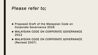 Malaysian Code on Corporate Governance 2017 Besides the CA 2016 another key document that leads the corporate governance development in Malaysia would be the MCCG which is based on three 3 key principles of good governance. Effective audit and risk management. 2015 placeholder We will be right with you.